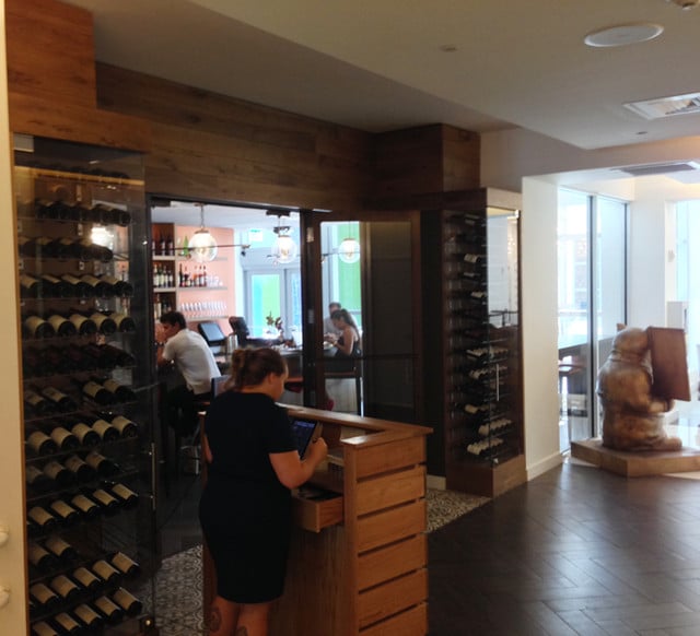 Jake explains. “We introduced wine racks flanking the sides, spaced just enough to allow views of the ocean beyond while maximizing the visual impact of the collection.”