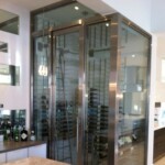 This wine cellar in particular has a very commercial look to it and is actually built in the exactly the same way a commercial wine cellar would be. It has glass and brushed stainless steel and metal with a heavy gauge commercial grade wine cellar door along with a commercial framework that would be seen in a store. This whole custom wine cellar has a commercial feel and look but in a residential atmosphere and is becoming more and more popular.